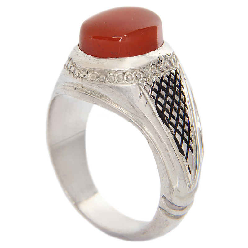 نوع انگشتر نقره مردانههمراه با سنگ و نگین , طرحدار