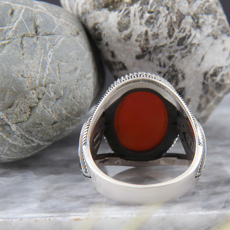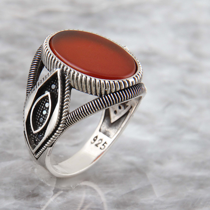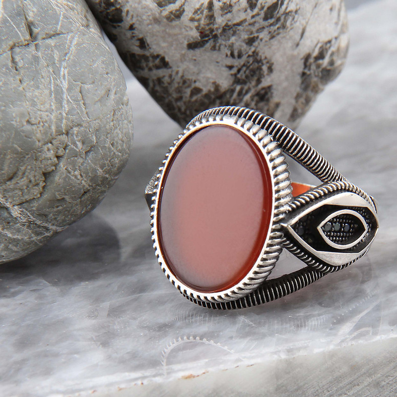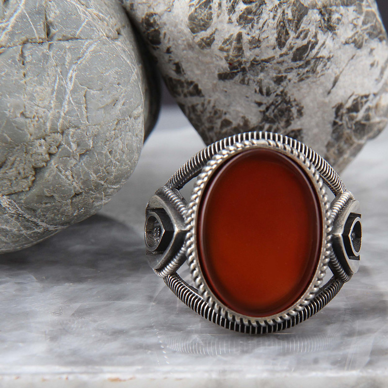 انگشتر نقره مردانه بازرگانی میلادی مدل رکاب ترک وارداتی عقیق نگین مارکازیت کد AM_4141