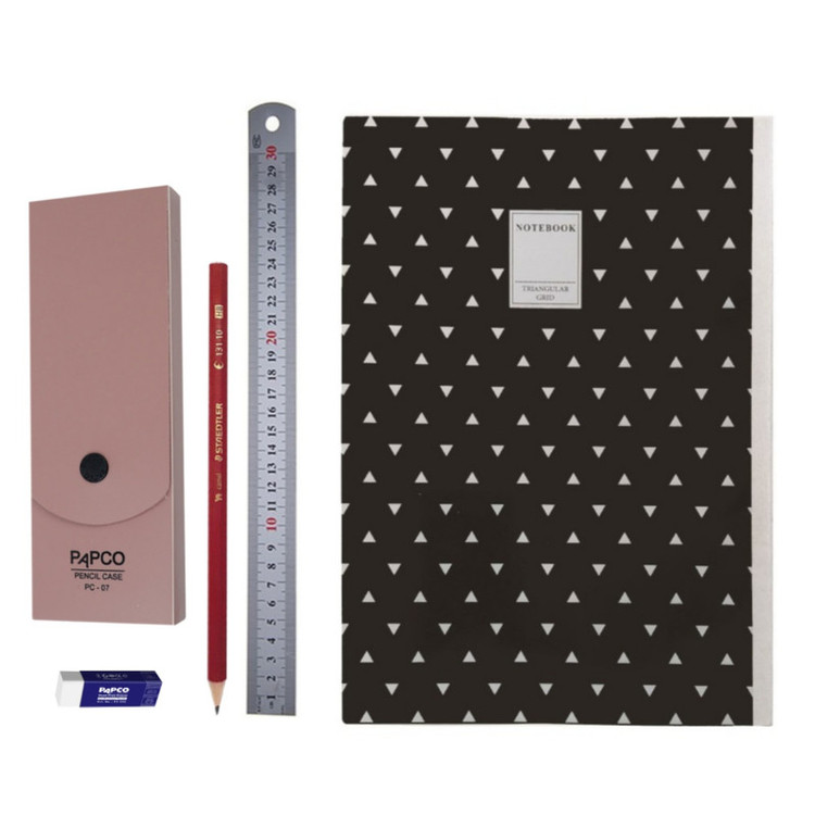 دفتر مشق 60 برگ پاپکو مدل پرونت کد 9146 - A4 به همراه جامدادی و خط کش بسته 5 عددی
