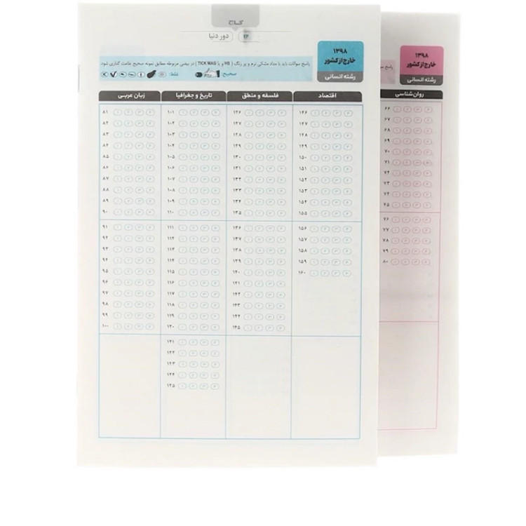 دارای 2 پاسخ برگ برای دو کتاب آزمون های پشتیبان