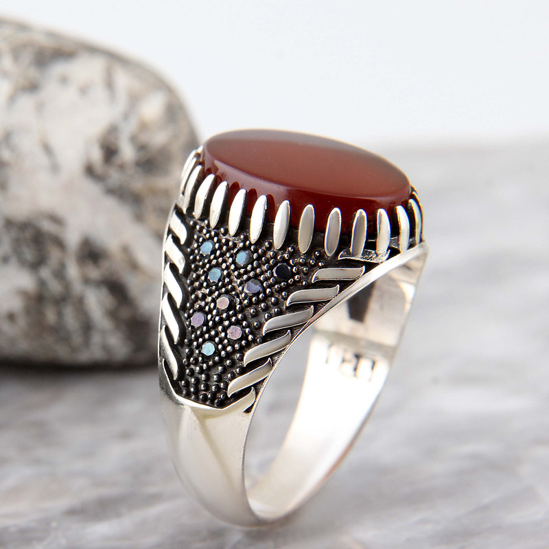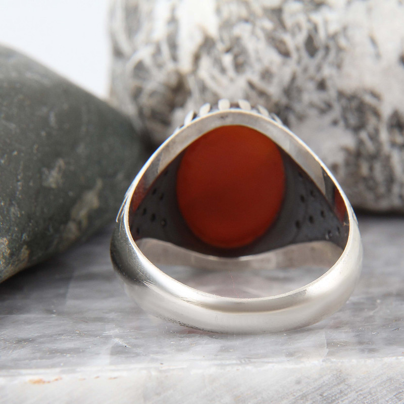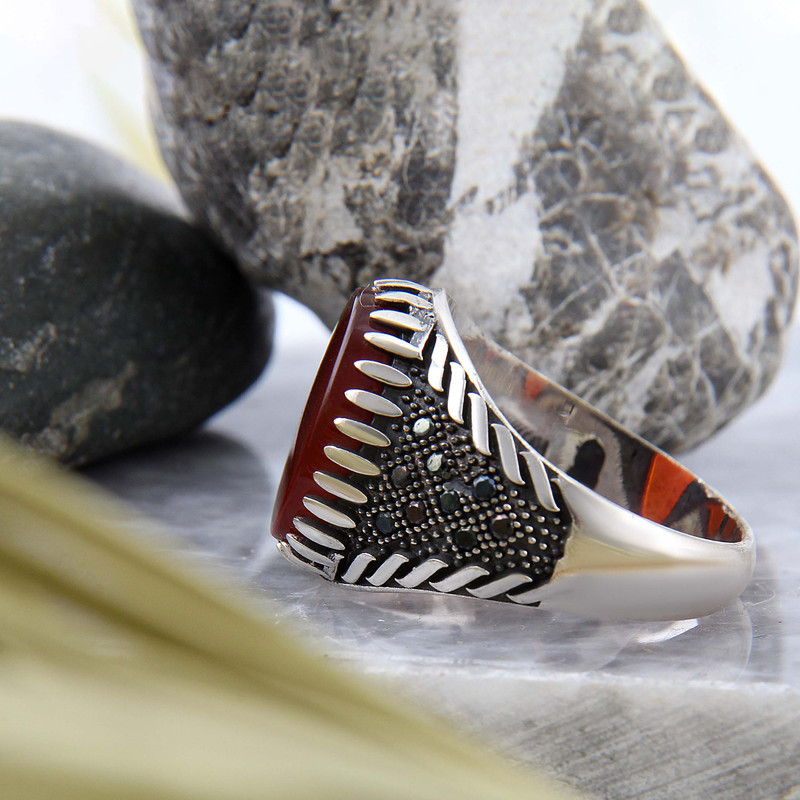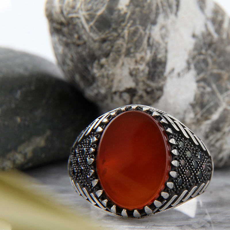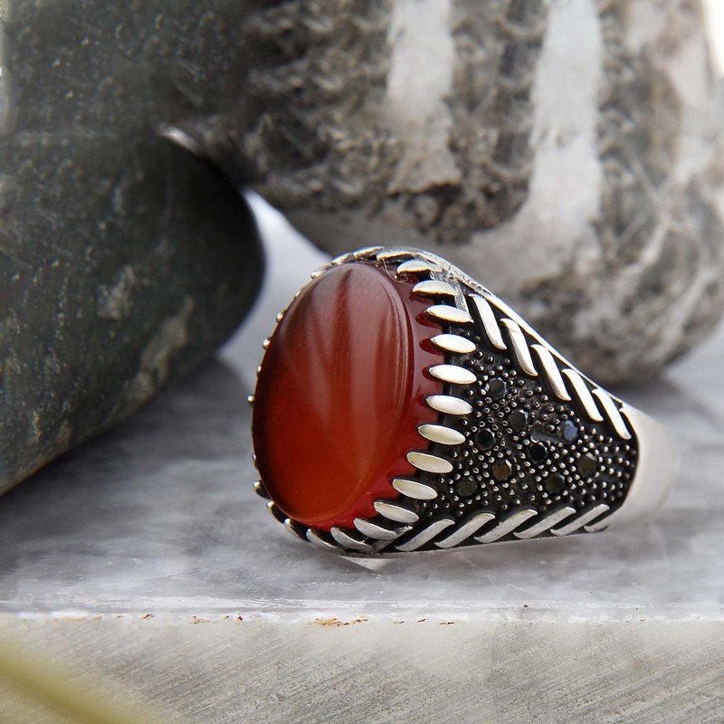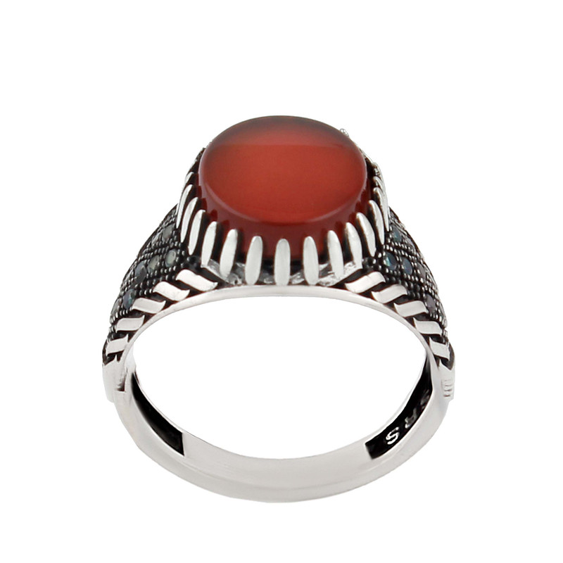 انگشتر نقره مردانه بازرگانی میلادی مدل رکاب ترک وارداتی عقیق سرخ نگین مارکازیت کد AM _4140