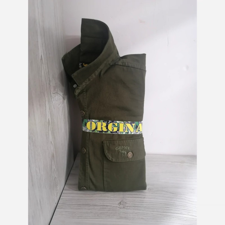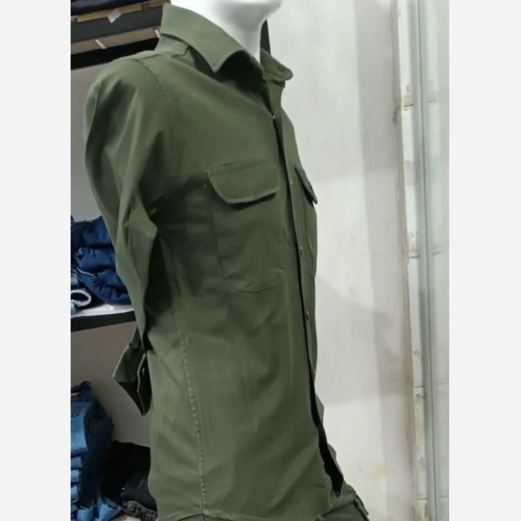 پیراهن مردانه کتان کش کمل رنگ سبز، دکمه فلزی همراه با کد تخفیف