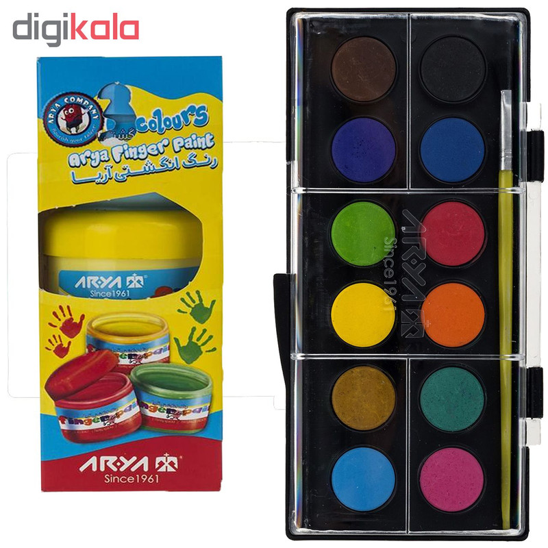 سایر توضیحاتآبرنگ 12 رنگ آریا بهمراه رنگ انگشتی 3 تایی آریا