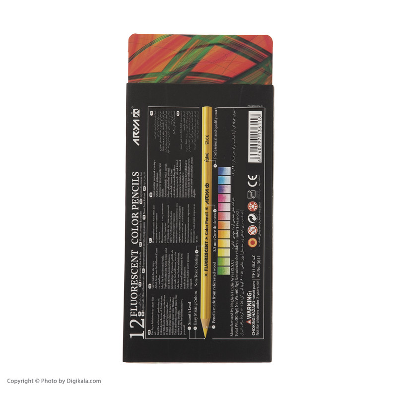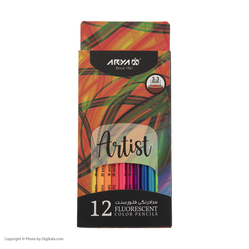 مداد رنگی 12 رنگ آریا مدل فلورسنت کد 3611