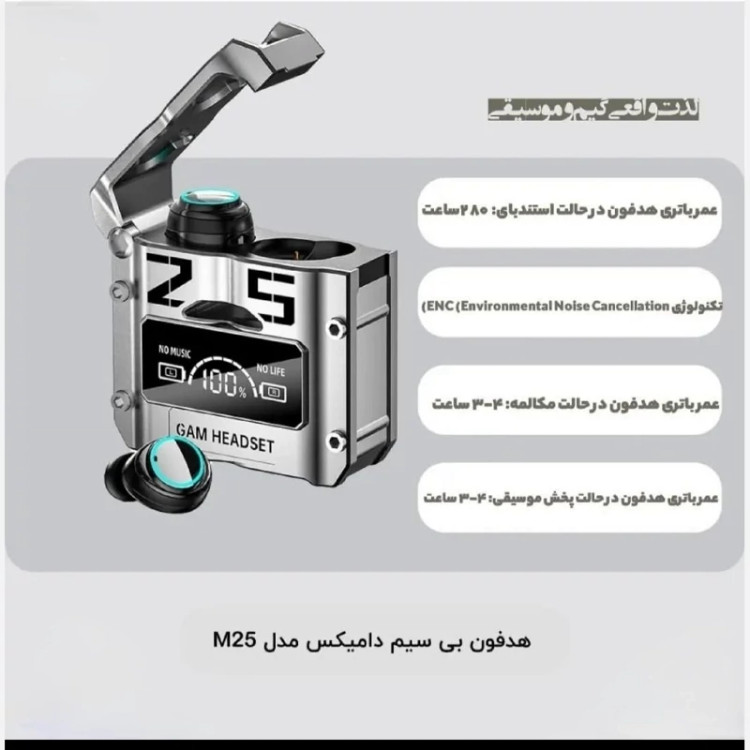 ایرپاد M25 گیمینگ نویز کنسلینگ لمسی ورژن 2024 بلوتوث 5/3 نمایشگر شارژ شرکتی