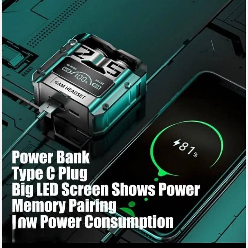 ایرپاد M25 گیمینگ نویز کنسلینگ لمسی ورژن 2024 بلوتوث 5/3 نمایشگر شارژ شرکتی