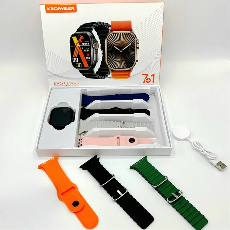 ساعت هوشمند KW 28 ULTRA 3 هفت بند اولترا اصلی 2025 بالاترین کیفیت ++A اورجینال تمام صحفه