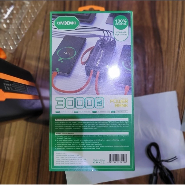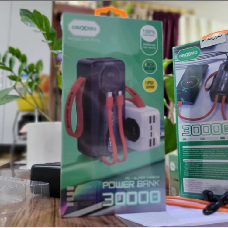 پاوربانک غول 30000mAh هزار اصلی 22/5W OMXMO سوپر فست 6 خروجی 4.5 امپر کمپینگ شرگتی