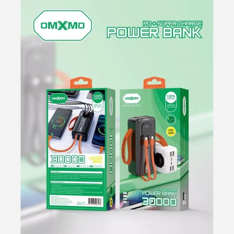 پاوربانک غول 30000mAh هزار اصلی 22/5W OMXMO سوپر فست 6 خروجی 4.5 امپر کمپینگ شرگتی