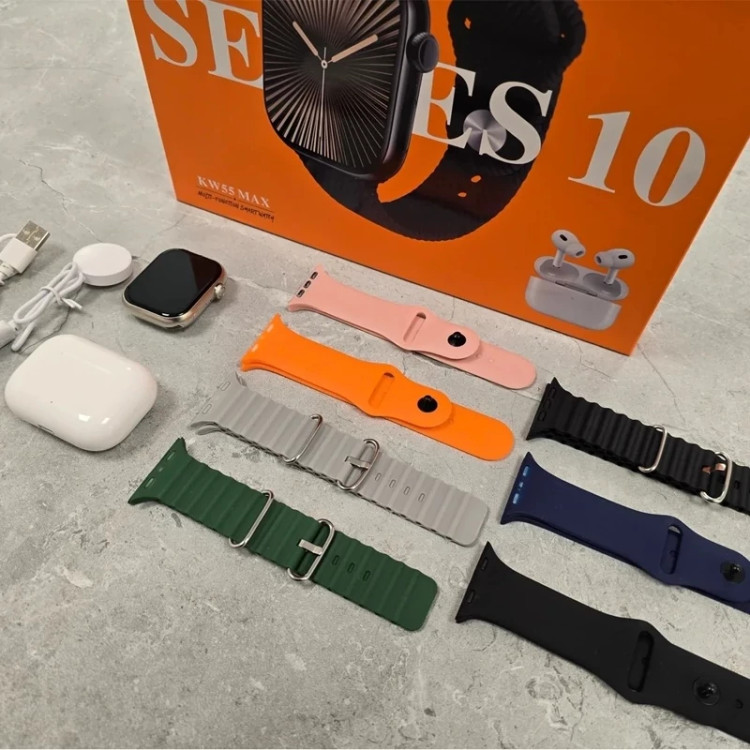 ساعت هوشمند KW55 MAX یک ساعت هوشمند با ایرپاد و بندهای متنوع است، که به عنوان یک گزینه مناسب برای استفاده روزانه و همچنین ورزش کردن معرفی شده است