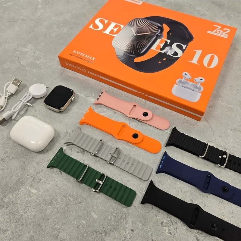 ساعت هوشمند KW55 MAX یک ساعت هوشمند با ایرپاد و بندهای متنوع است، که به عنوان یک گزینه مناسب برای استفاده روزانه و همچنین ورزش کردن معرفی شده است