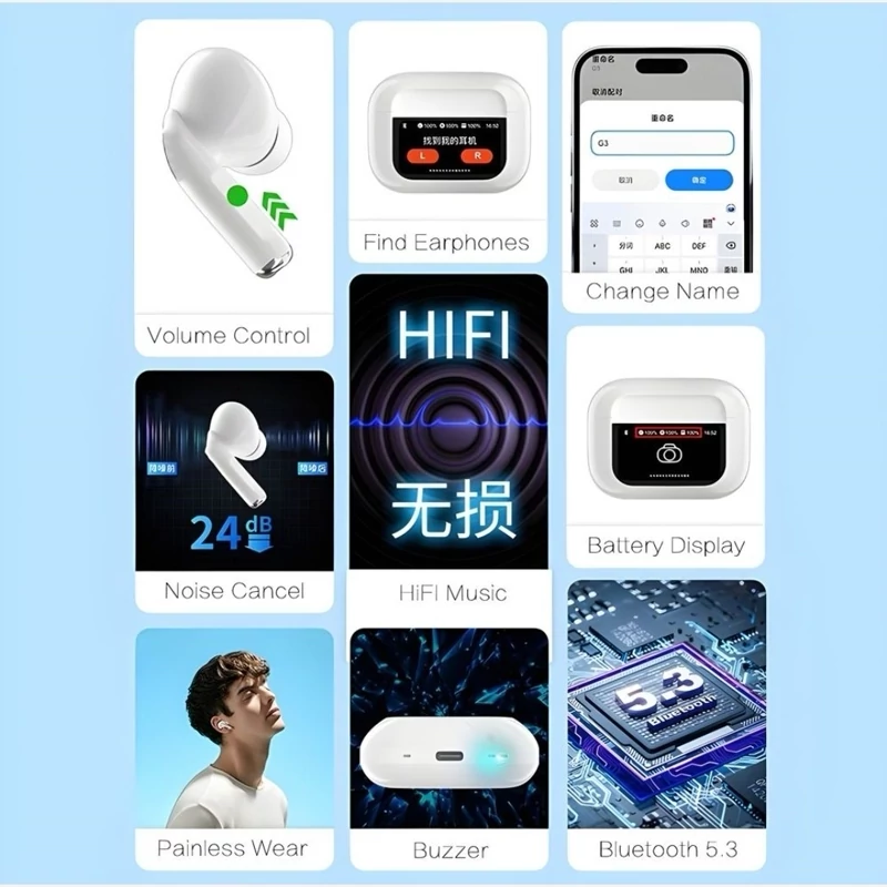 ایرپاد. A9 PRO مانیتور دار ANC - ENC نویز کنسلینگ فعال ورژن 2025