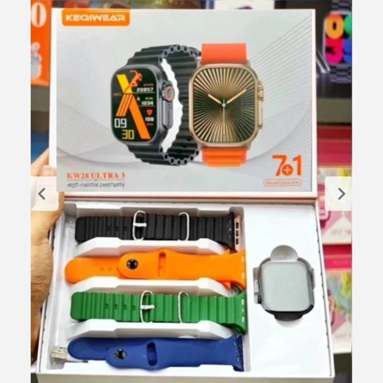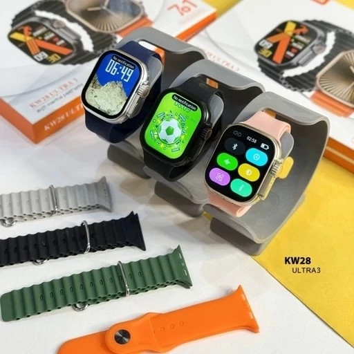 ساعت هوشمند KW 28 ULTRA 3 هفت بند تمام صحفه تمامی قابلیت ها