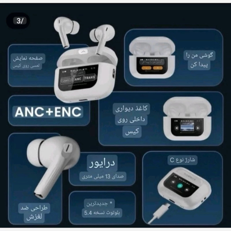 ایرپاد A9 PRO مانیتور دار ANC-ENC نویز کنسلینگ فعال ورژن 2025