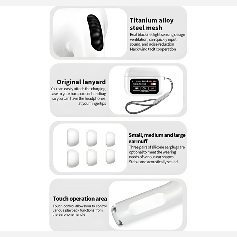 ایرپاد A9 PRO مانیتور دار ANC-ENC نویز کنسلینگ فعال ورژن 2025