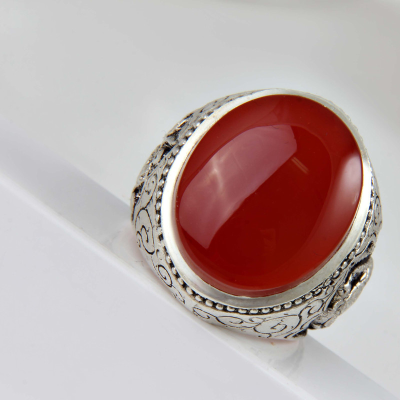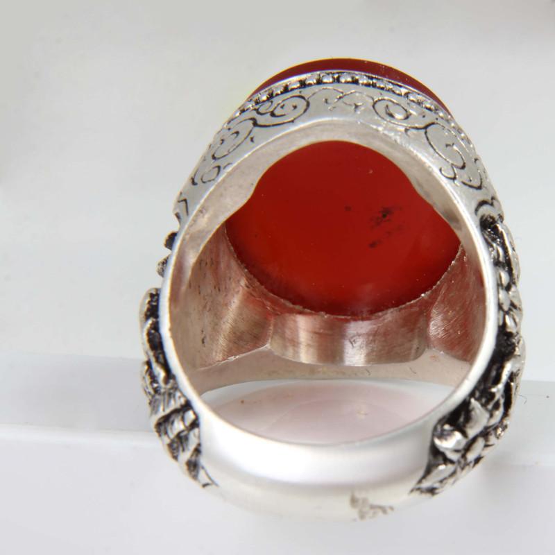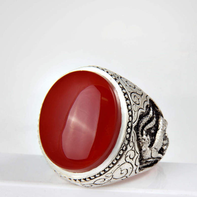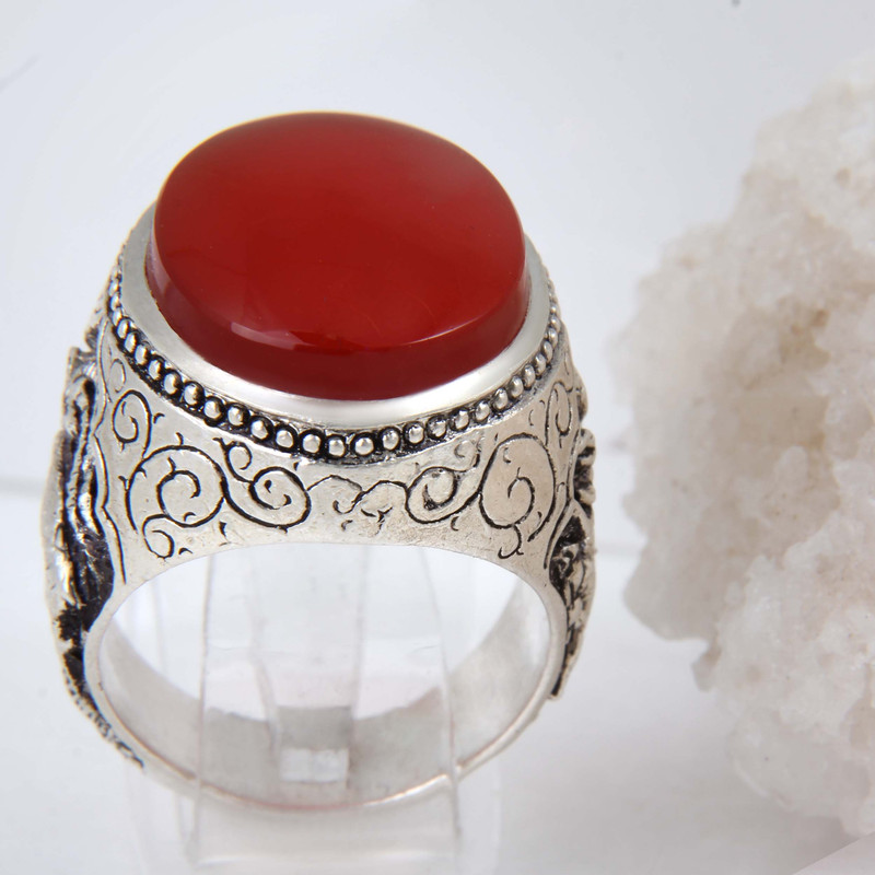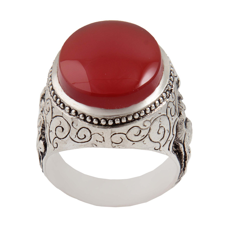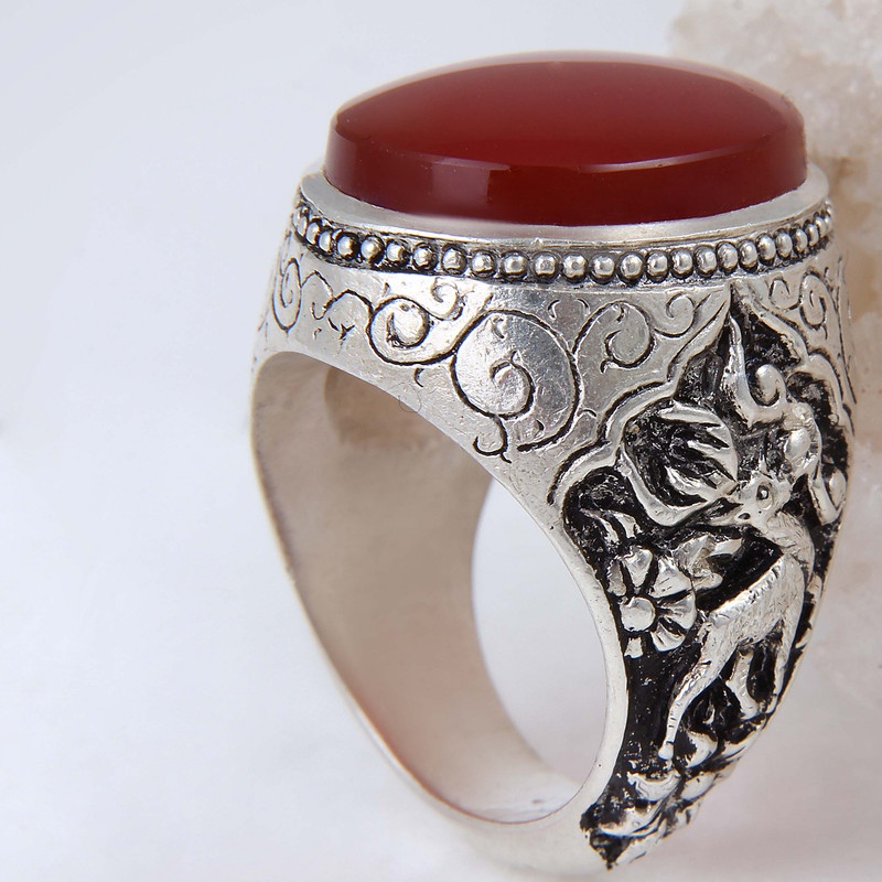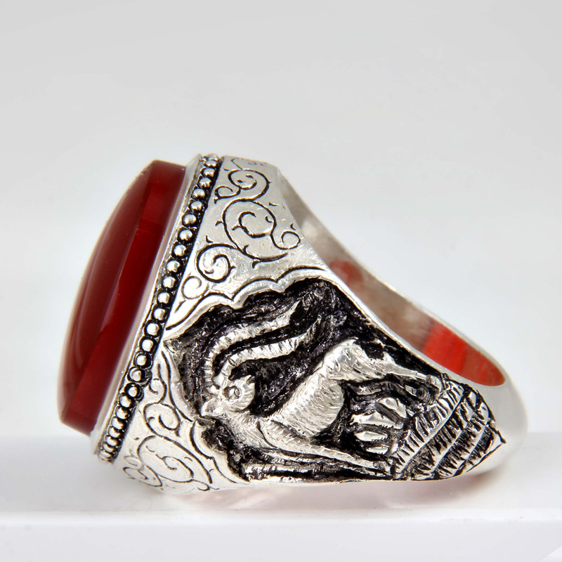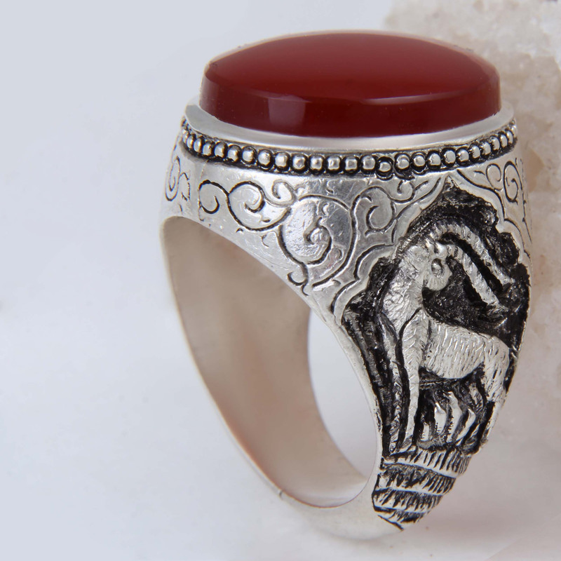 انگشتر نقره مردانه بازرگانی میلادی مدل عقیق رکاب قلمه زنی طرح آهو کد AM_1842