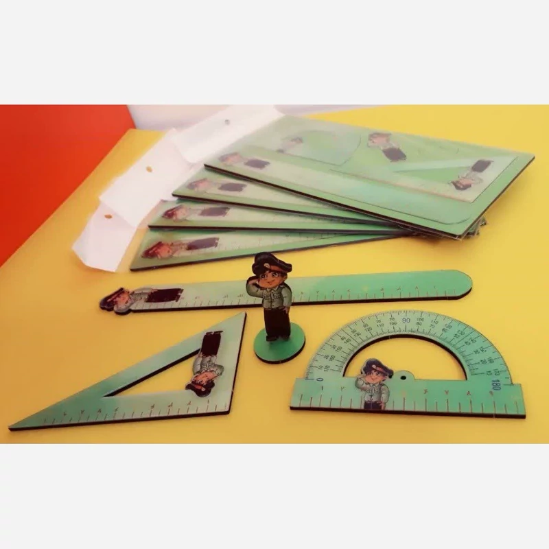 🌺شامل: خط کش 20 سانت، نقاله، گونیا، استند چوبی.