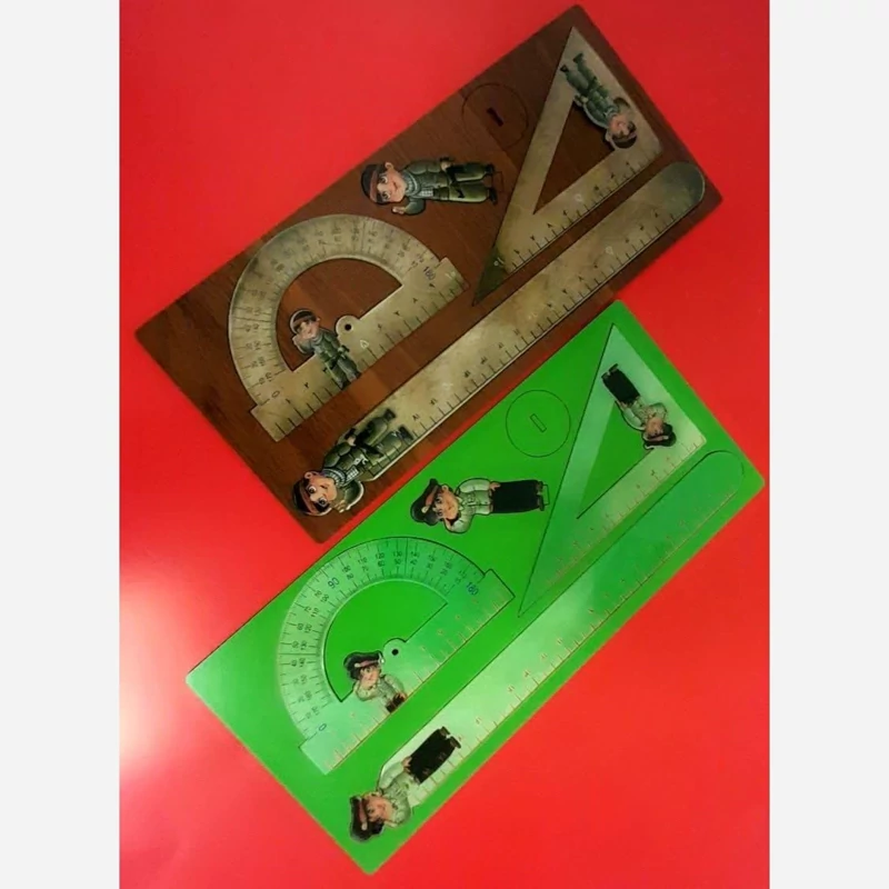 🌺شامل: خط کش 20 سانت، نقاله، گونیا، استند چوبی.