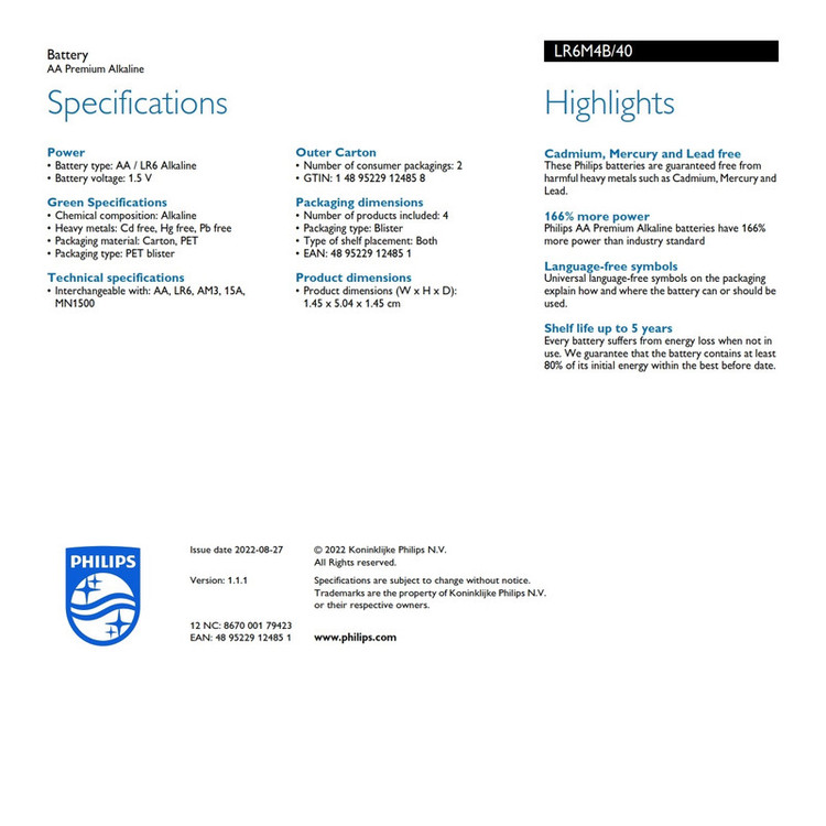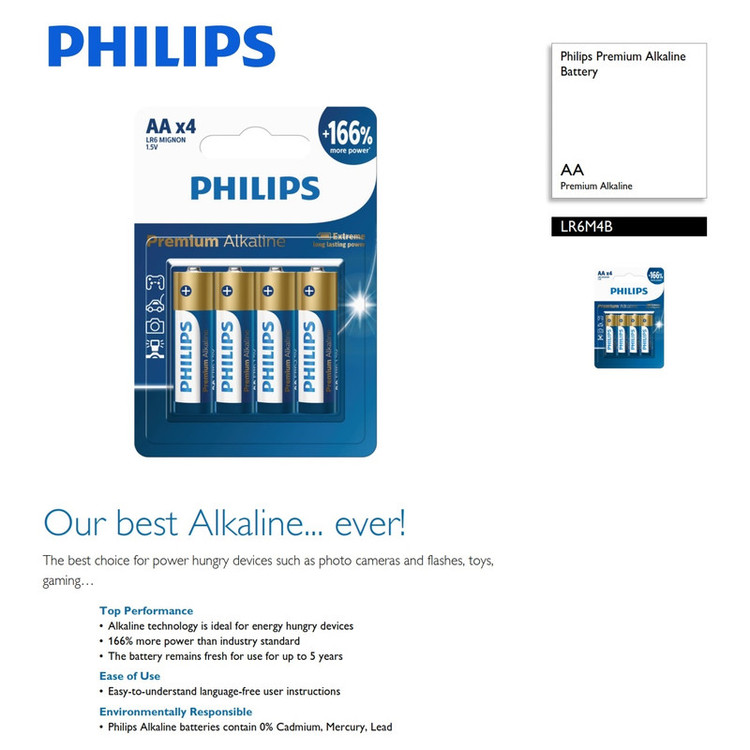 باتری قلمی فیلیپس مدل پریمیوم آلکالاین بسته چهار عدد