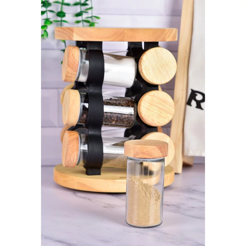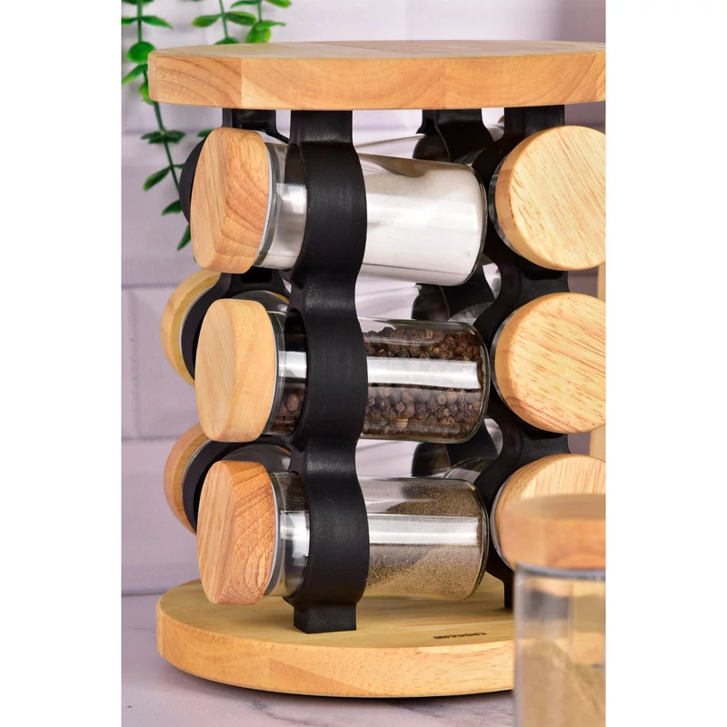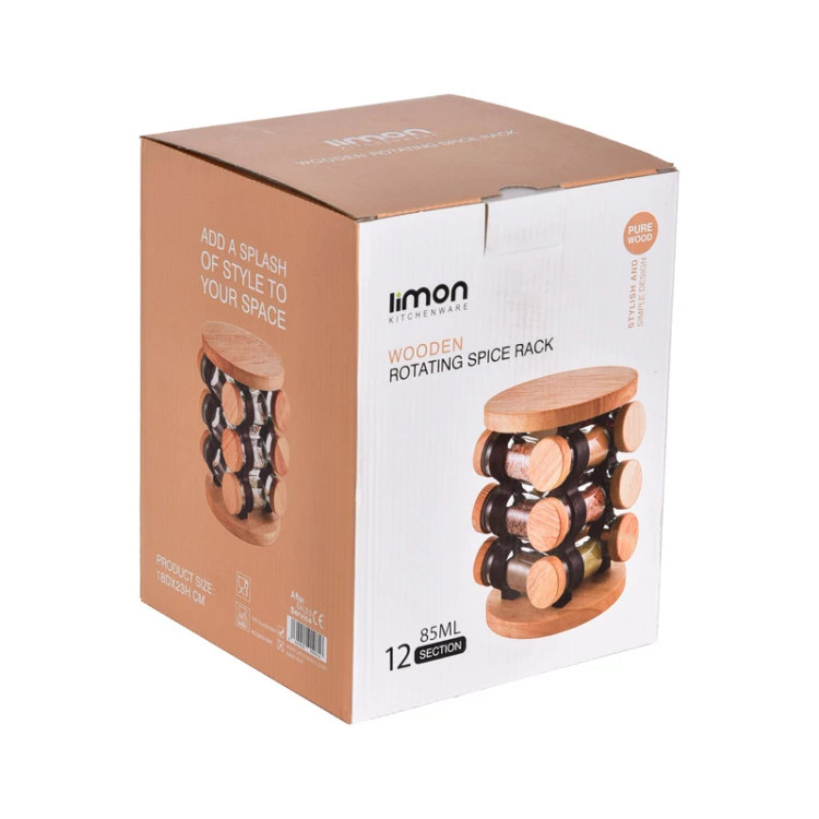 ست ادویه گردان 12 عددی چوبی لیمون کد 2304 برای استفاده چاشنی ها کنار اجاق گاز محصول زیبا و کاربردی است. فقط محصول را بچرخانید و چاشنی مورد نظرتان را از روی استند چوبی بردارید و به غذای خود طعمی دلچسب ببخشید.