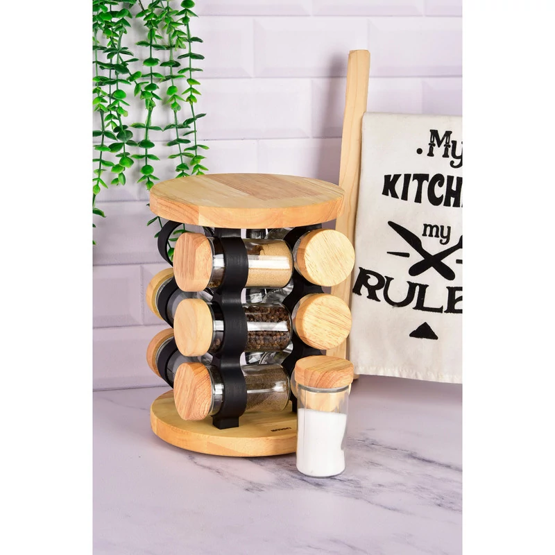 ست ادویه گردان 12 عددی چوبی لیمون کد 2304 برای استفاده چاشنی ها کنار اجاق گاز محصول زیبا و کاربردی است. فقط محصول را بچرخانید و چاشنی مورد نظرتان را از روی استند چوبی بردارید و به غذای خود طعمی دلچسب ببخشید.