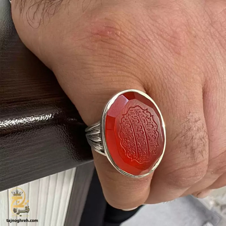 این انگشتر ترکیبی از هنر اصیل حکاکی و سنگ عقیق طبیعی است که زیبایی، معنویت و کیفیت را در یک محصول گرد هم آورده است.