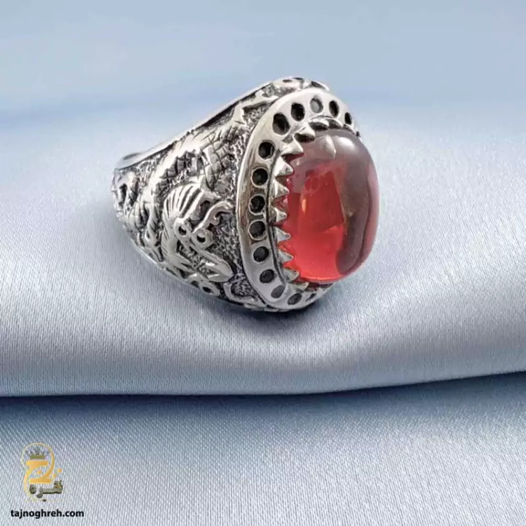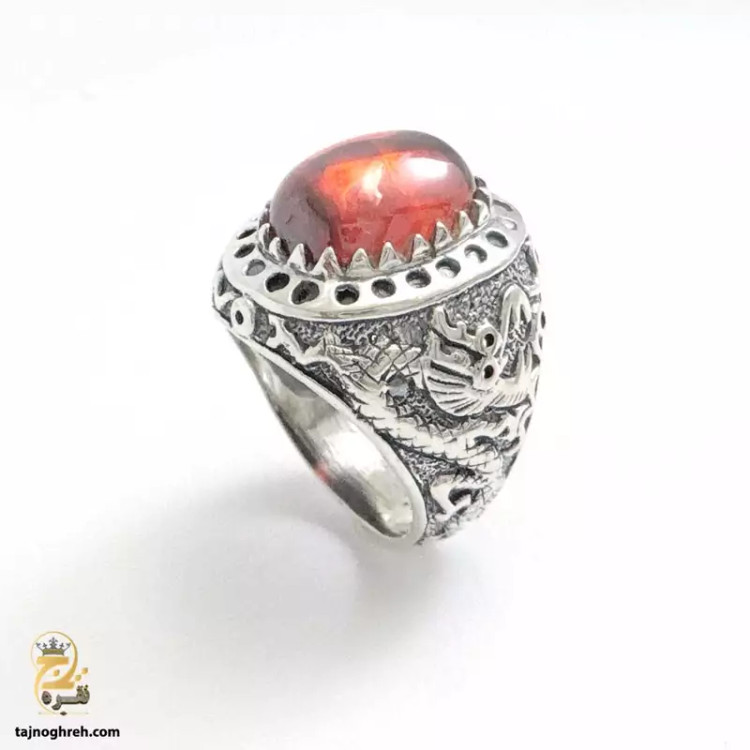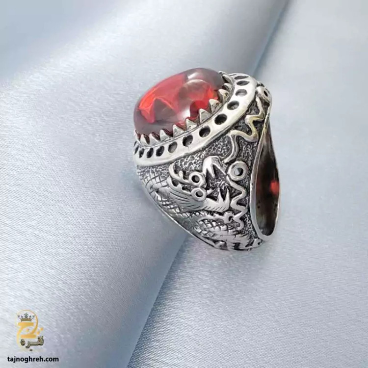 طرح اژدها با نگین لعل قرمز روشن