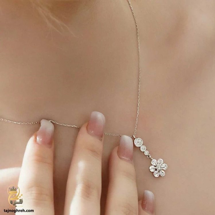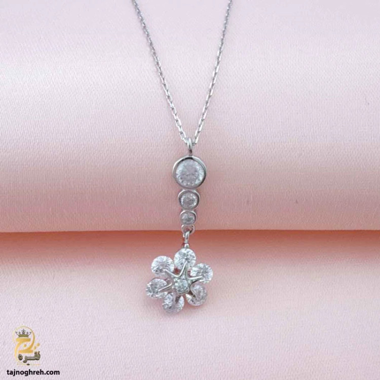 خرید و قیمت گردنبند نقره جواهری طرح گل زنانه و دخترانه مدل ZSW Z38