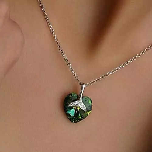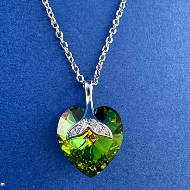 آویز قلبی این گردنبند با طیف های آبی و سبز هفت رنگ، نور را به گونه ای بازتاب می دهد که در شرایط نوری مختلف جلوه های متفاوتی ایجاد می کند.