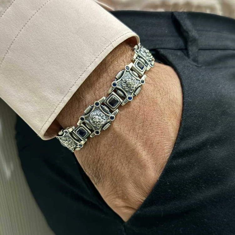 طراحی دستبند ترکیبی از سبک کلاسیک و مدرن است و با جزئیاتی همچون سر شیر که نمادی از قدرت و شجاعت است.