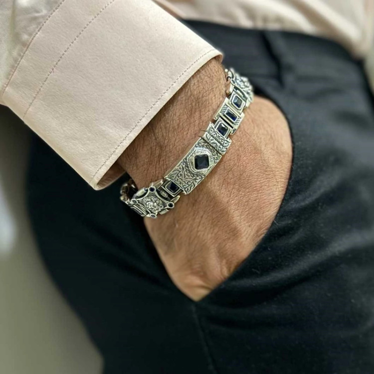 دستبند نقره مردانه نگین دار تایلندی کد BSM B1 با طراحی خاص و ظرافت مثال زدنی از نقره استرلینگ با عیار 925 ساخته شده است که نشان از کیفیت و اصالت آن دارد.