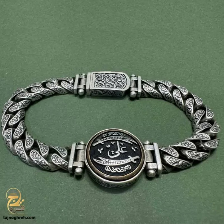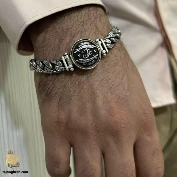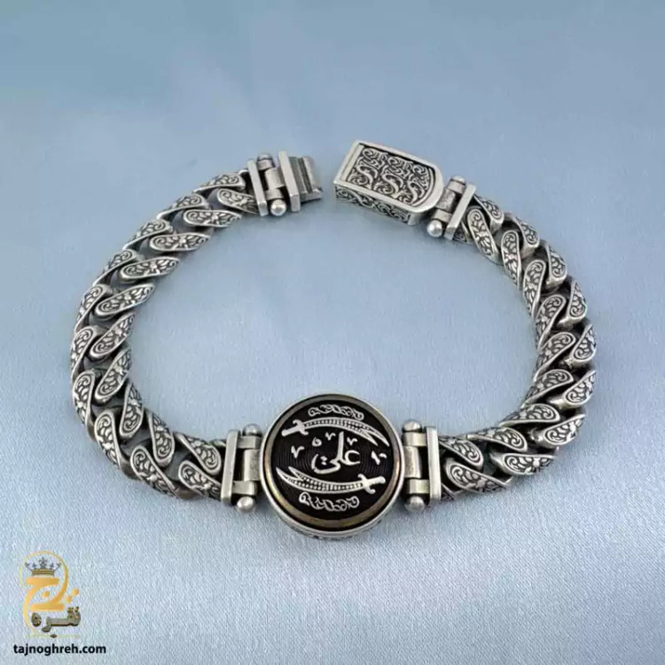 خرید دستبند نقره مردانه سنگین طرح دار حضرت علی مدل BSM B4