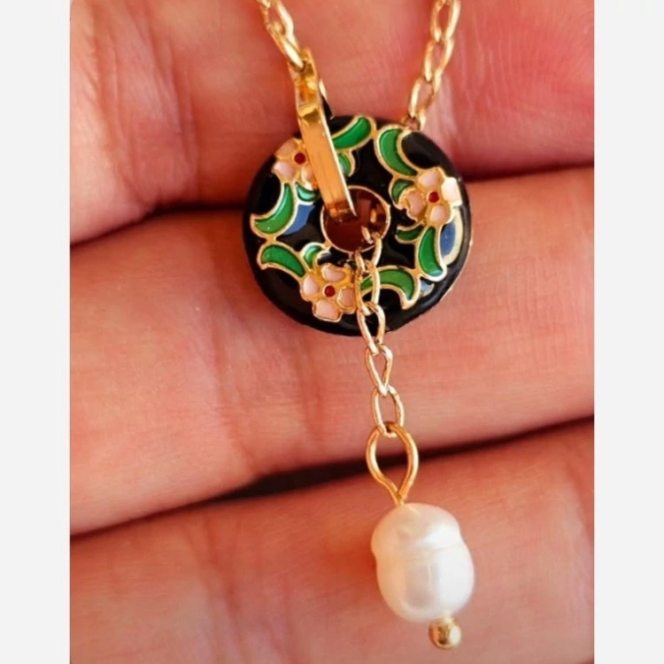 گردنبندمیناکاری گردنبند مینا طرح گل گردنبند مروارید پرورشی
