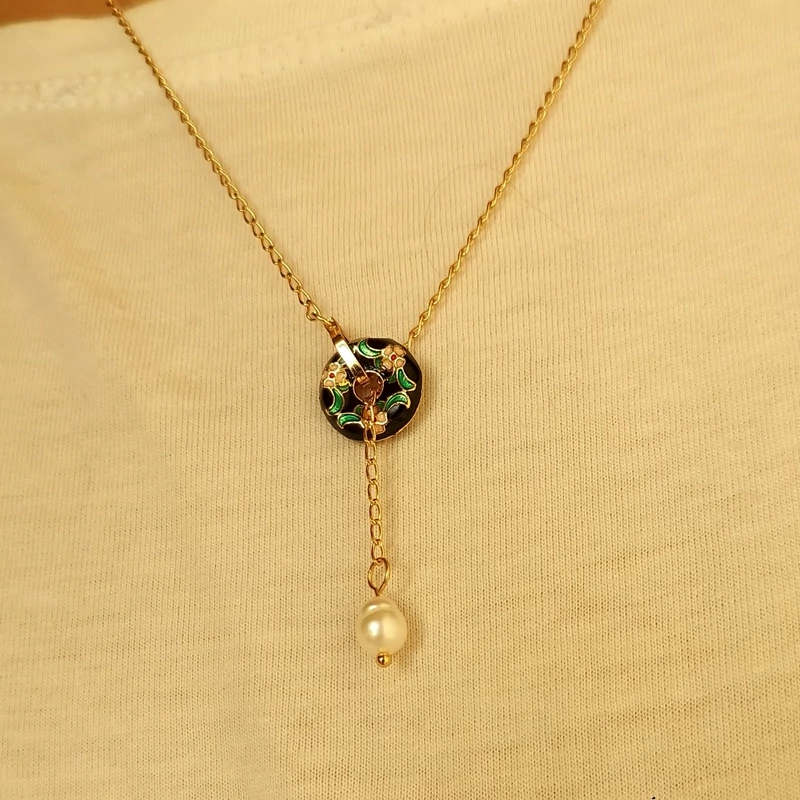 گردنبندمیناکاری گردنبند مینا طرح گل گردنبند مروارید پرورشی