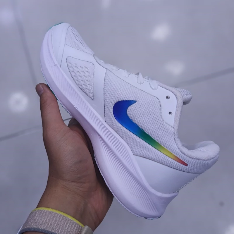 کتونی نایک گاید رنگ سفید خط هفت رنگ زنانه و دخترانه