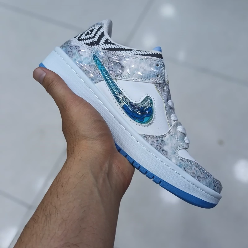 کتونی نایک دراگون رنگ نقره ای آبی طرح سوسماری مردانه