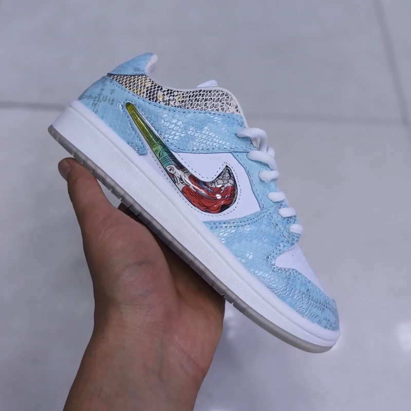 کتونی نایک دراگون رنگ سفید آبی خط اکلیلی هفت رنگ زنانه و دخترانه