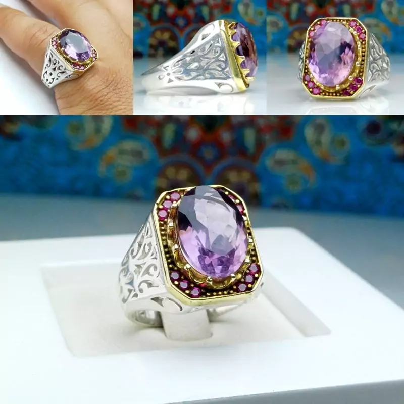 انگشتر مردانه آماتیس اصلی رکاب نقره چنگی دورمخراج عیار925ارسال رایگان سایزرایگان