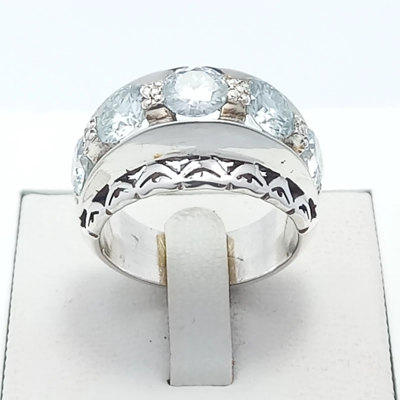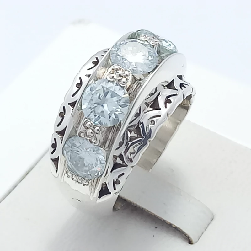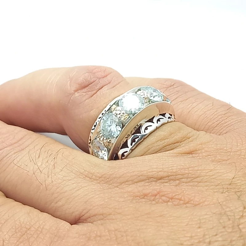 انگشتر نقره رکاب دست ساز مردانه همراه با موزانایت سفید