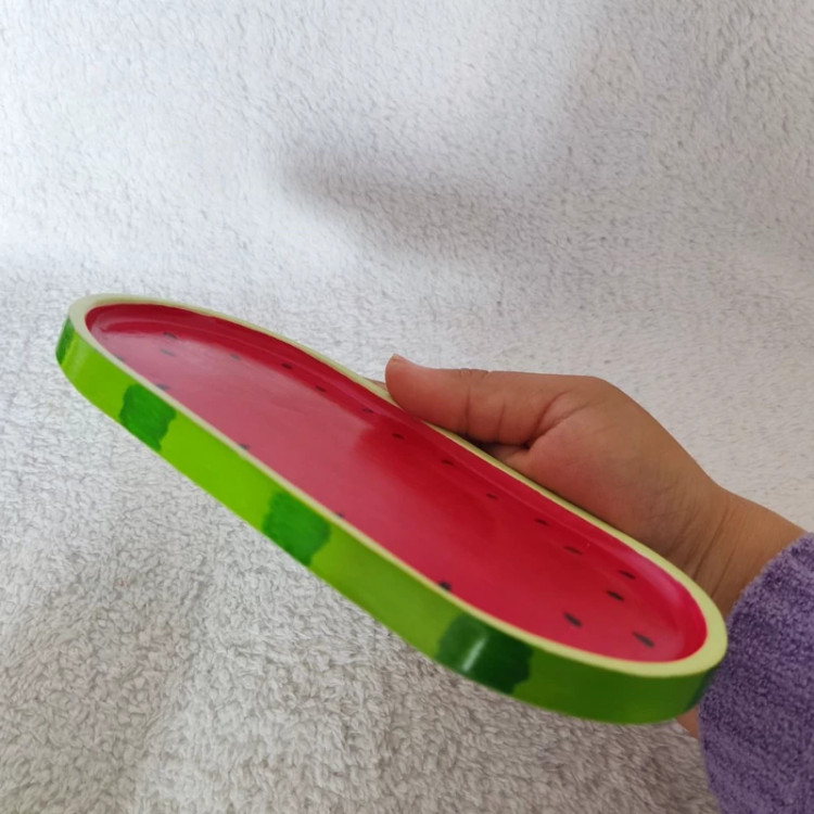 سینی بیضی هندونه ای جنس سنگ مصنوعی اندازه 18 در 9.5 سانت ، سینی دکوراتیو یلدایی ، سینی یلدایی اکسسوری هندوانه ای ، سینی