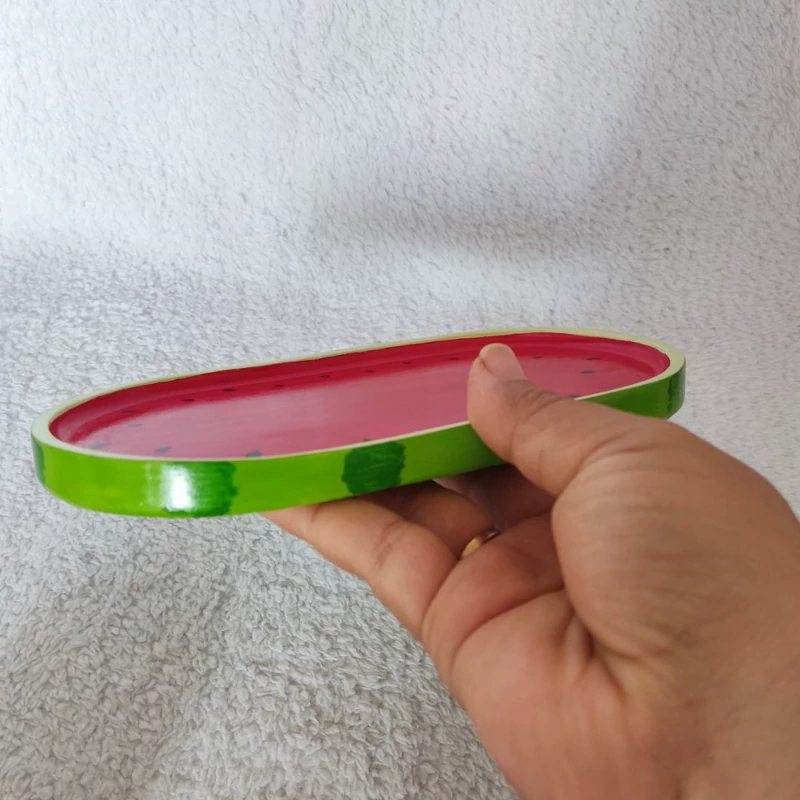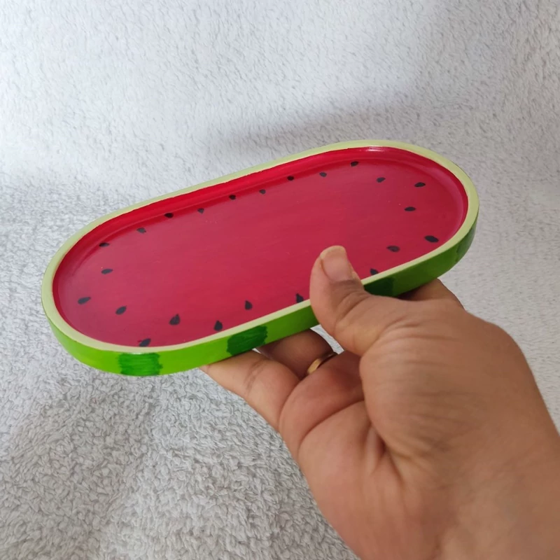 سینی بیضی هندونه ای جنس سنگ مصنوعی اندازه 18 در 9.5 سانت ، سینی دکوراتیو یلدایی ، سینی یلدایی اکسسوری هندوانه ای ، سینی