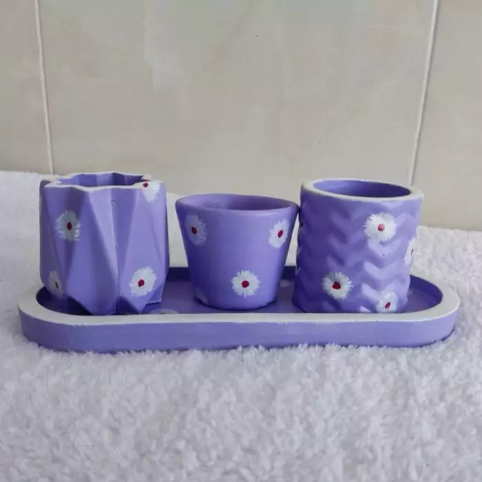 ست اکسسوری جنس سنگ مصنوعی ، دکوری سینی بیضی و گلدان ، سینی اکسسوری رنگ شده ،