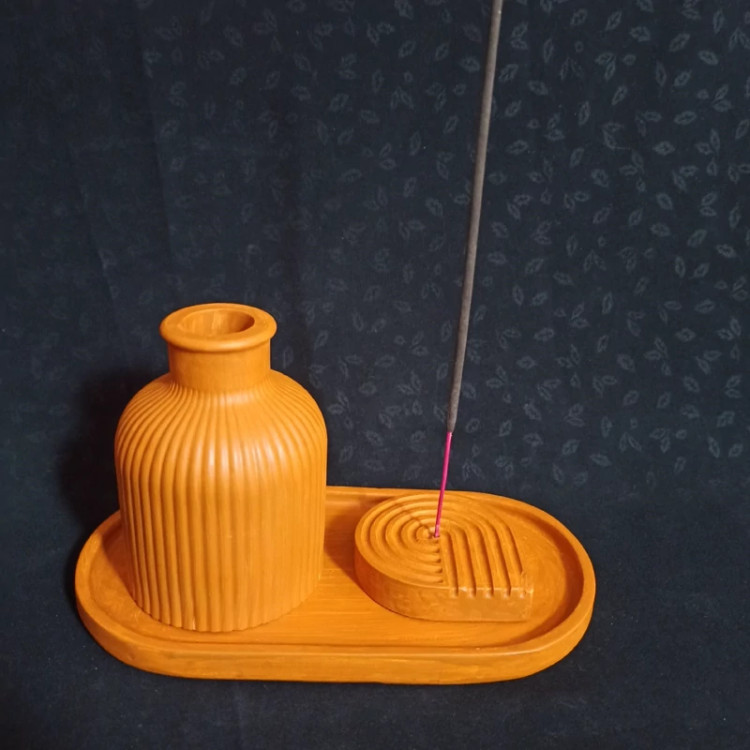 ست اکسسوری سنگی ، دکوری سینی بیضی سینی دکوراتیو ، سینی اکسسوری ، اکسسوری سنگ مصنوعی ، سینی بتنی رنگی ست گلدان و جاعودی