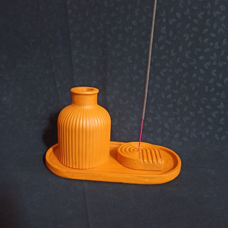 ست اکسسوری سنگی ، دکوری سینی بیضی سینی دکوراتیو ، سینی اکسسوری ، اکسسوری سنگ مصنوعی ، سینی بتنی رنگی ست گلدان و جاعودی