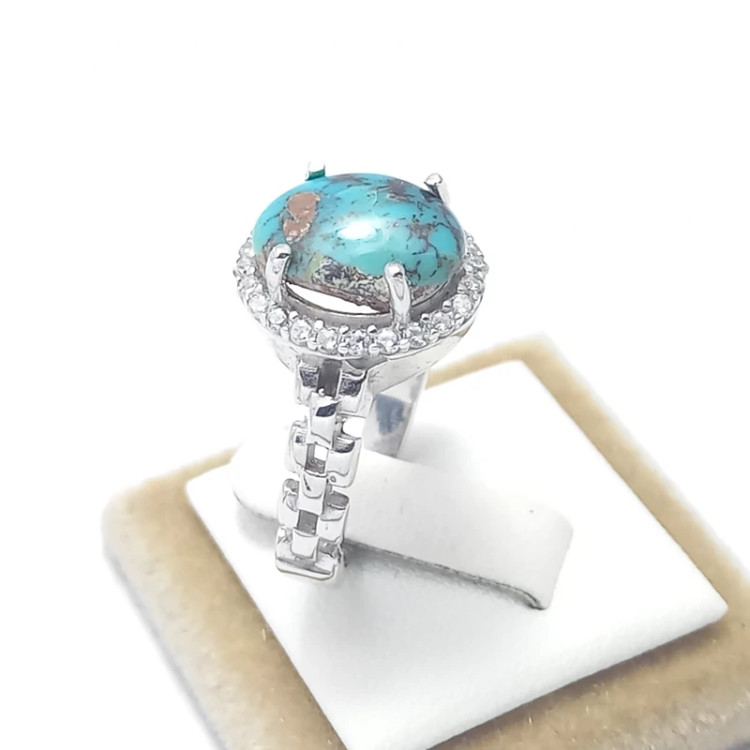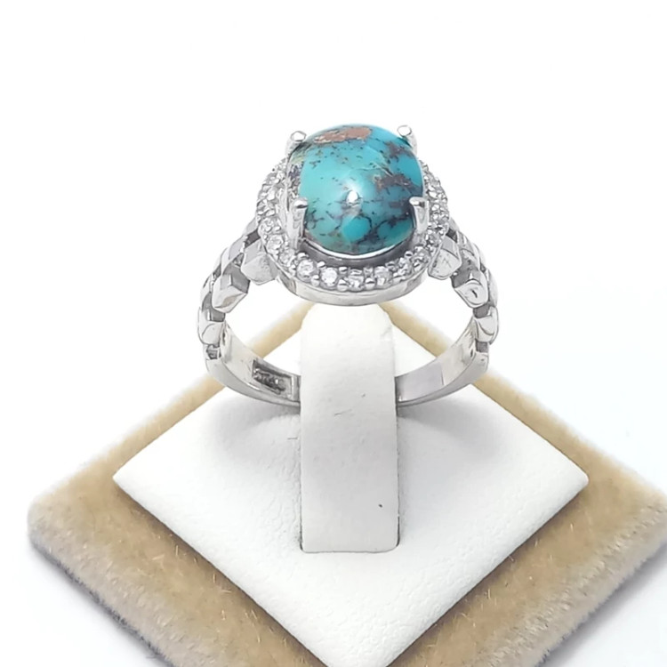 انگشتر نقره زنانه با روکش رادیوم همراه با فیروزه نیشابوری 4