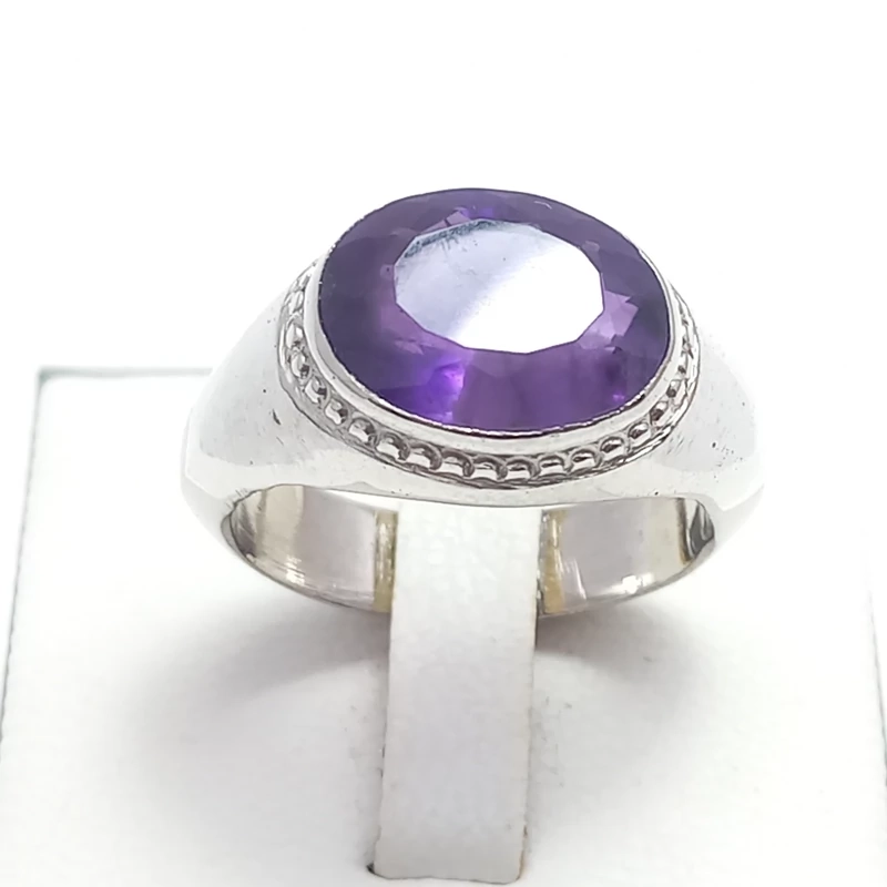 انگشتر نقره رکاب دست ساز مردانه همراه با سنگ آمیتیست