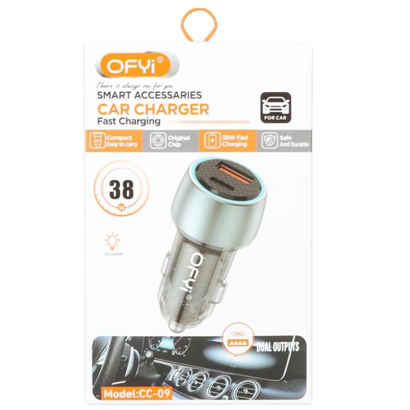 آداپتور شارژر فندکی مدل سی سی 09 از جمله محصولات تولید شده توسط شرکت OFYI است که از دو پورت دبل فست شارژ برخوردار است. با کمک این فندکی شرکت معتبر اوفی می توانید بدون آسیب به باطری گوشی و بدون فشار به برق اتومبیل موبایل و تبلت خود را شارژ کنید. این آداپتور مناسب گوشی هایی است که از قابلیت شارژ سریع پشتیبانی می کنند. استفاده از قاب شیشه ای با چراغ LED در این شارژر به جذابیت بصری آن افزوده و می تواند جلوه جذابی به اتومبیل شما بدهد.