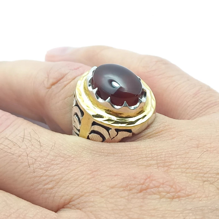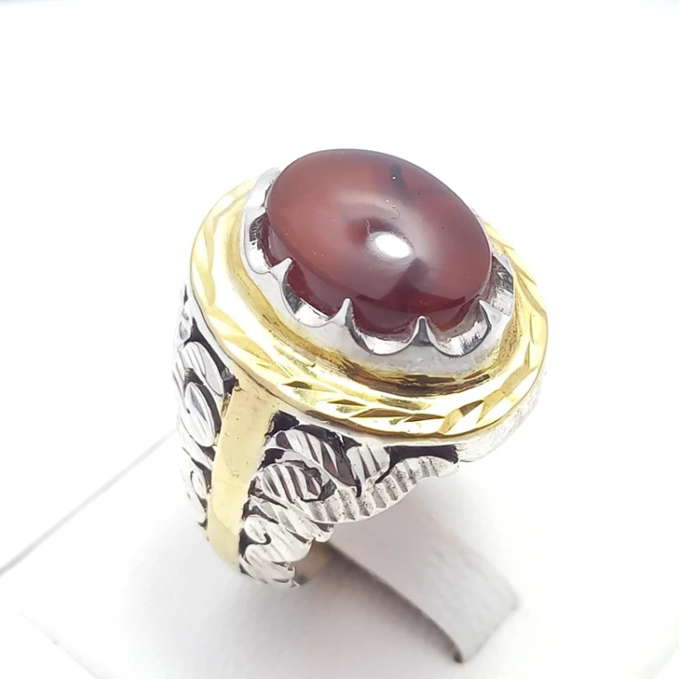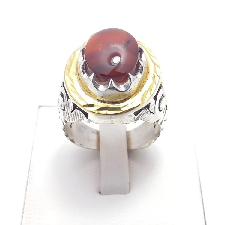 انگشتر نقره رکاب دست ساز مردانه همراه با عقیق یمنی سرخ 3