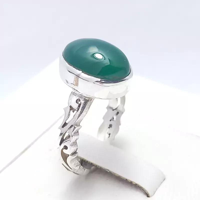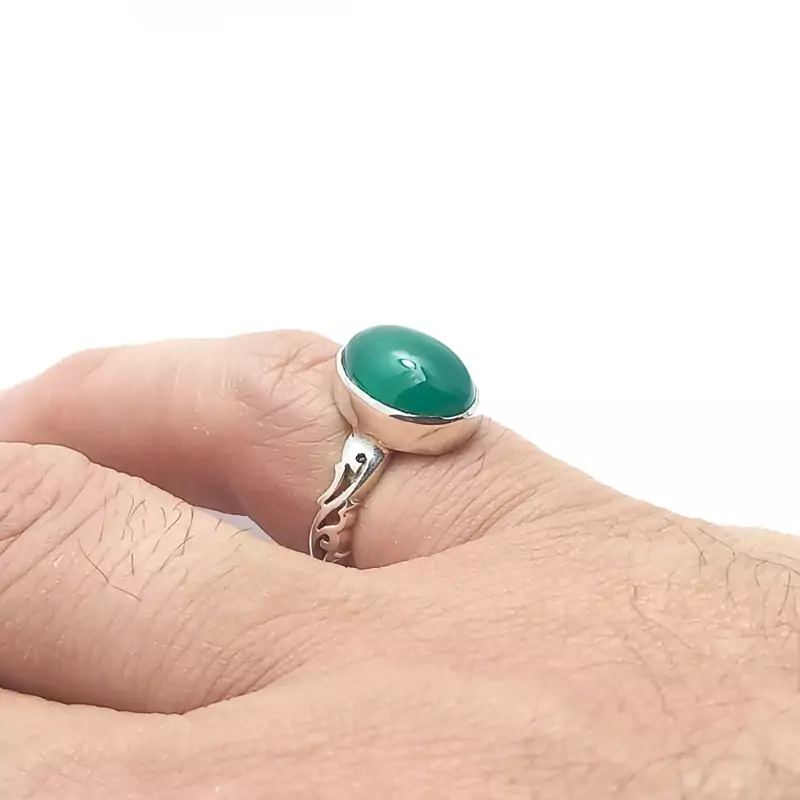 انگشتر نقره مردانه همراه با عقیق سبز 3