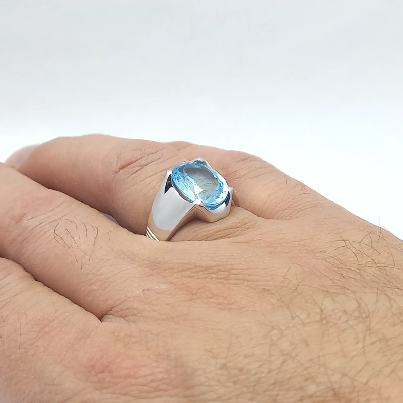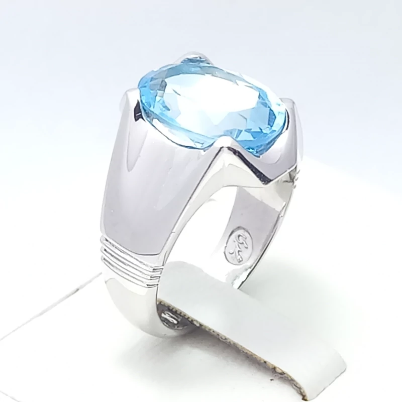انگشتر نقره رکاب دست ساز مردانه همراه با توپاز 2